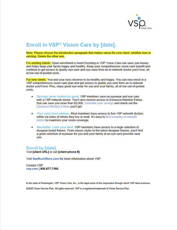 Make it yours: Get in touch with your VSP Sales Representative to receive your personalized version.